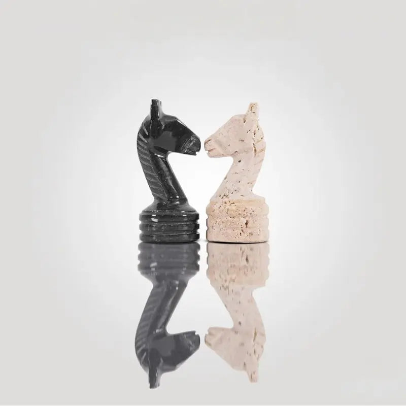 Chess Figures 3.5'' Travertine and White Chess Pieces for Chess Sets, Chess Set Board Games