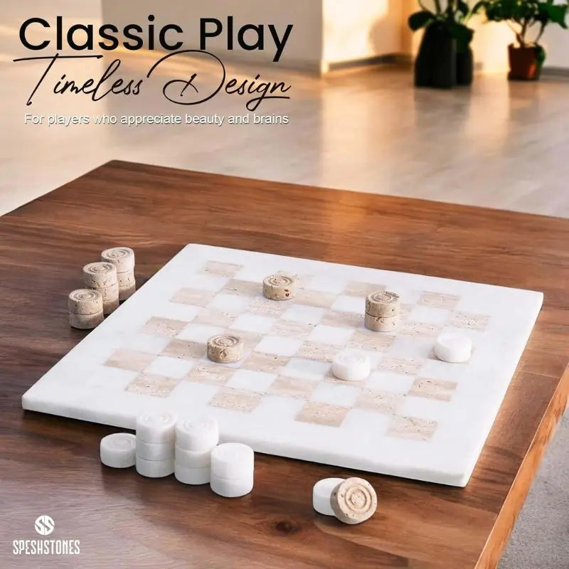 Checker Figures 1.25'' White and Travertine Chess and Checkers Game for Family Board Games