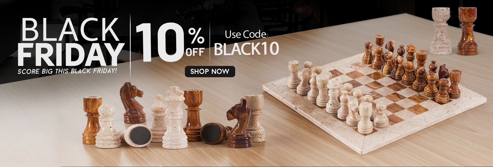 Travertine and White Marble Chess Set with Extra Queens – 12" Stone Board Game