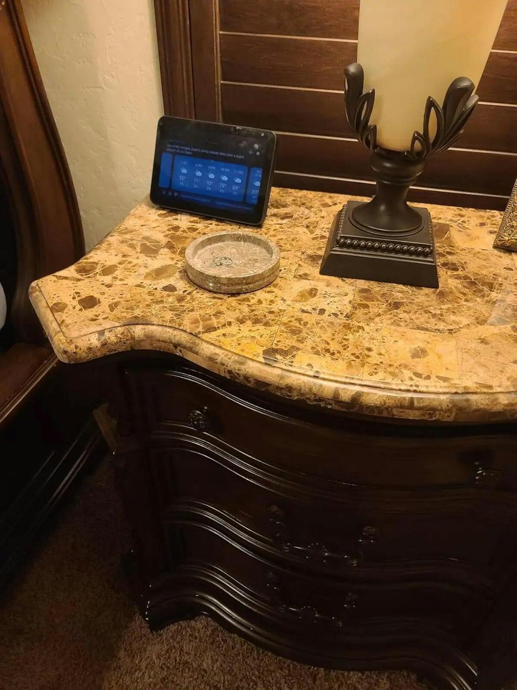 Beautiful. Exactly as I had hoped. Great quality. Arrived well packaged. Great size for nightstand.