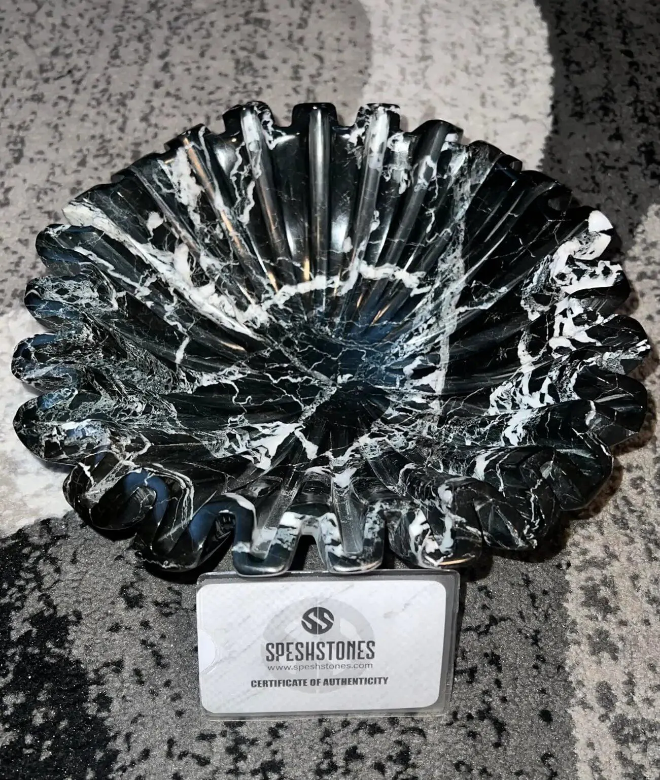 I’m so happy with this SPESHSTONES 10” Marble Ruffle Bowl! The black and white marble design looks stunning and goes perfectly with my decor. It’s solid, heavy, and beautifully crafted and the quality really shows. I have it on my small glass table in the family room, and it makes the perfect centerpiece all on its own. I also love that it has felt on the bottom to protect my table from scratches and includes an authenticity card.