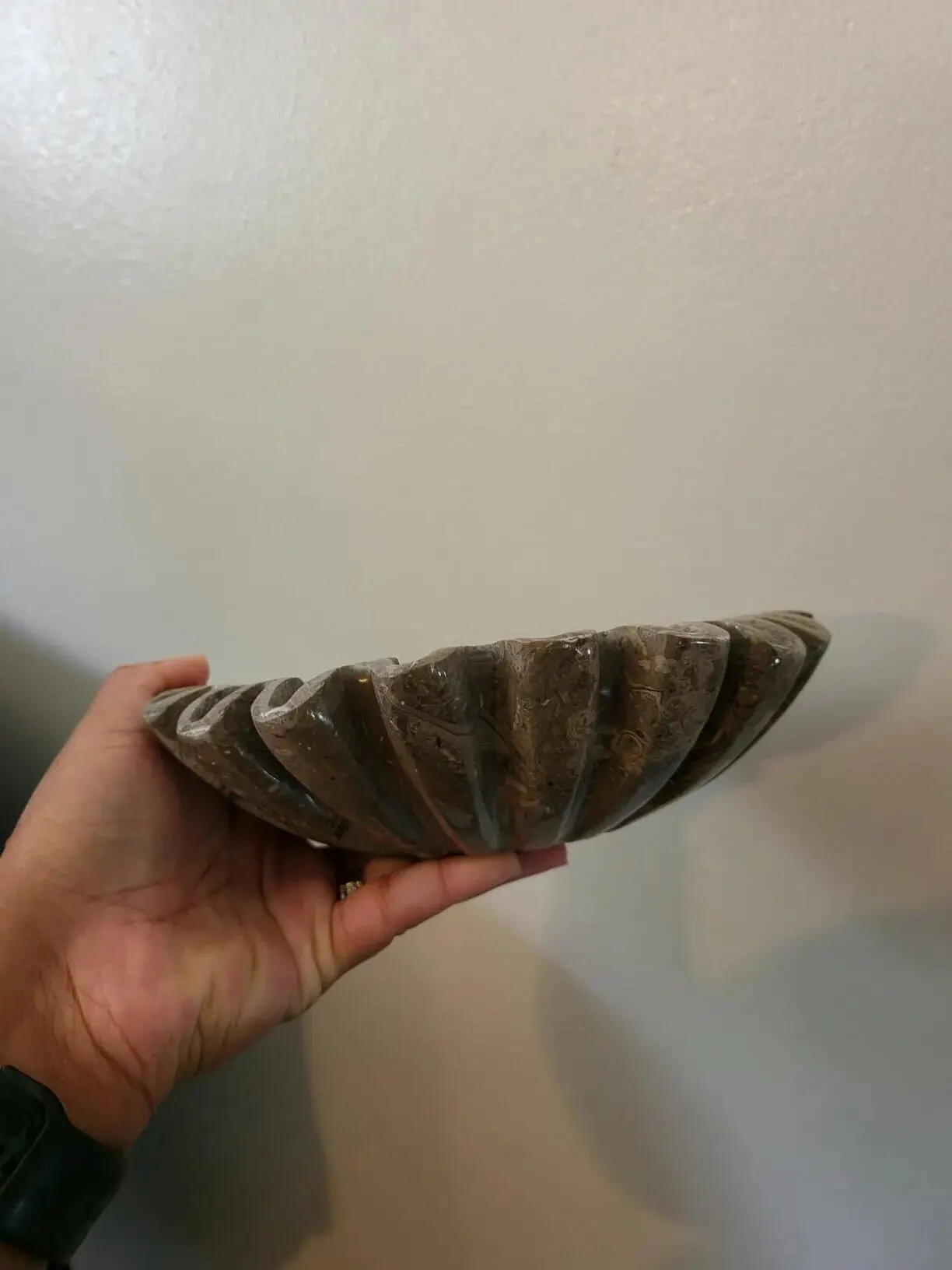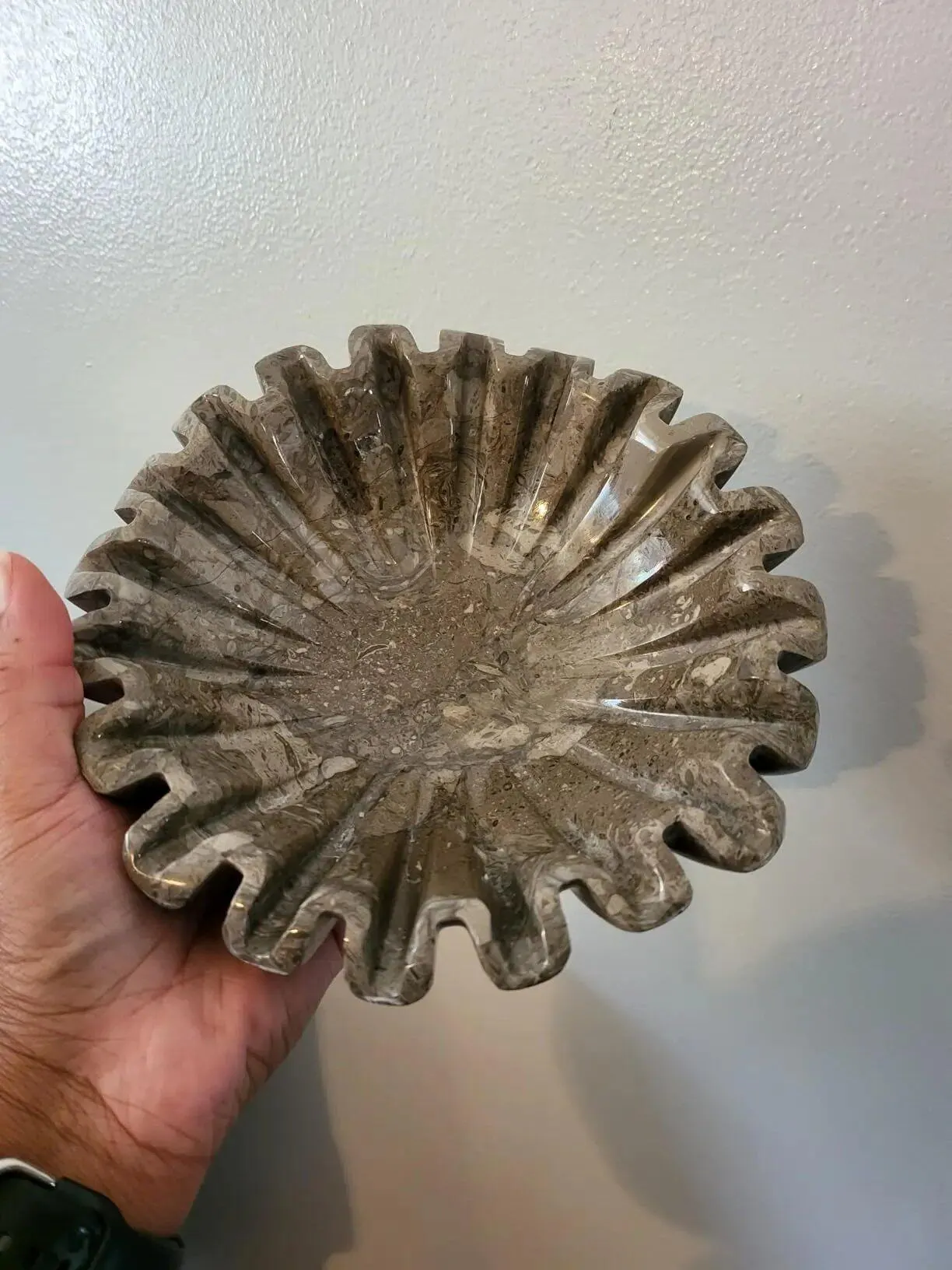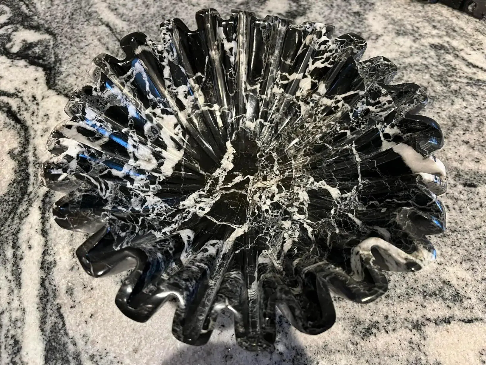 This marble bowl does not disappoint. The marble stone itself is beautiful. High contrast. High drama! The irregular markings of the stone are complemented by the irregular edges of the ruffles, which serve to further heighten the contrast of the marble. It's really a beautiful piece.