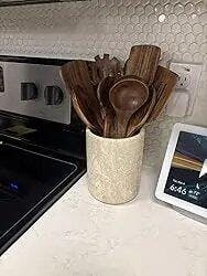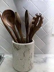 • Kitchen Use: Perfect as a kitchen utensil holder countertop, marble utensil holder, or stone kitchen utensil holder for everyday cooking. Holds spoons, spatulas, whisks, and knives.