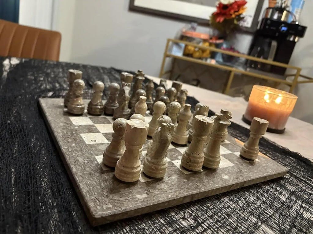 This isn’t a mass-produced novelty. This is a stone chess set that belongs on the table — not in the closet.